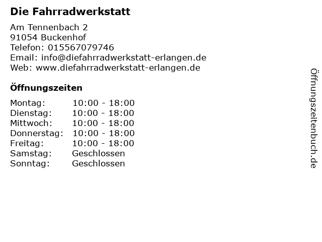 | Öffnungszeiten Die Fahrradwerkstatt in Buckenhof anzeigen | |