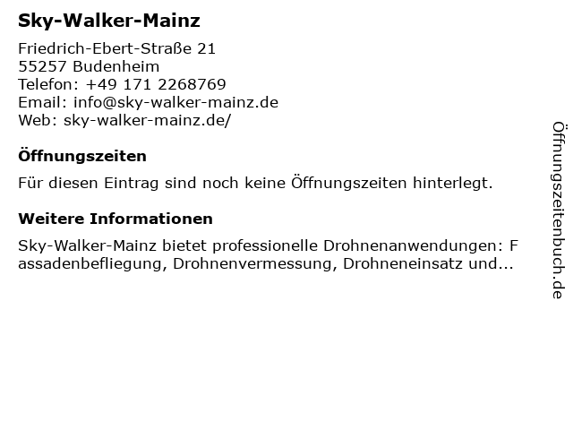 | Öffnungszeiten Sky-Walker-Mainz in Budenheim anzeigen | |