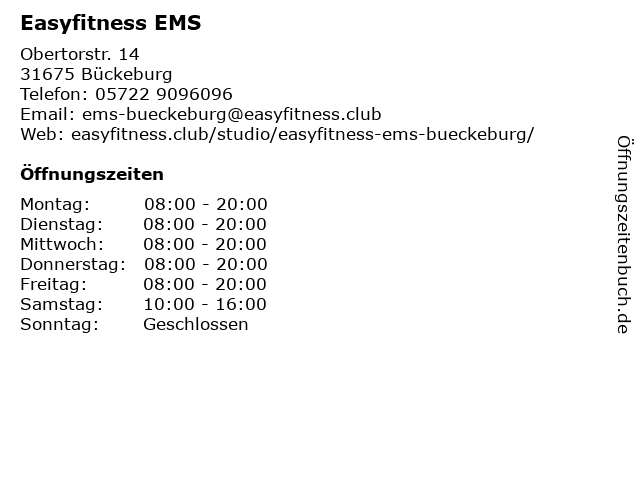 | Adresse Easyfitness EMS in Bückeburg anzeigen |