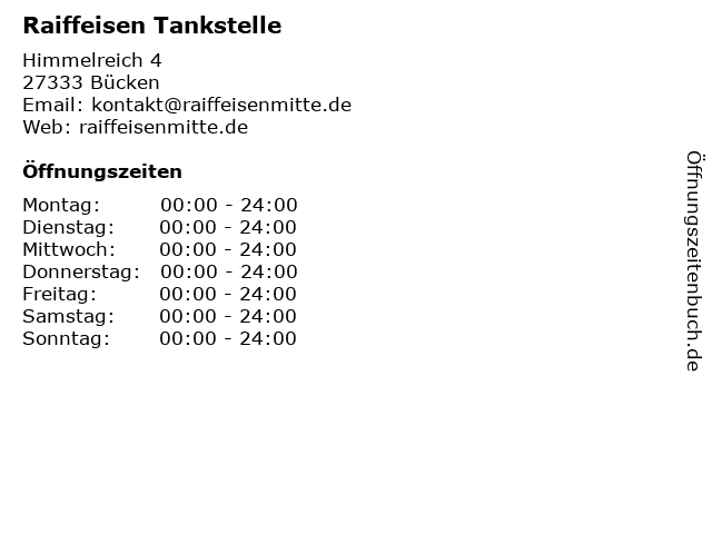 | Öffnungszeiten Raiffeisen Tankstelle in Bücken anzeigen | |