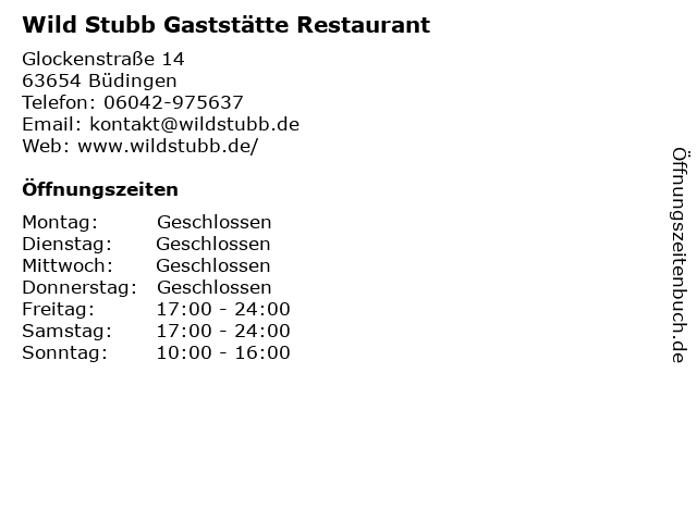 Branchen & Suchbegriffe zu Wild Stubb Gaststätte Restaurant:essen, gaststätte, getränke, kaffee, restaurant, stubb, wild |
