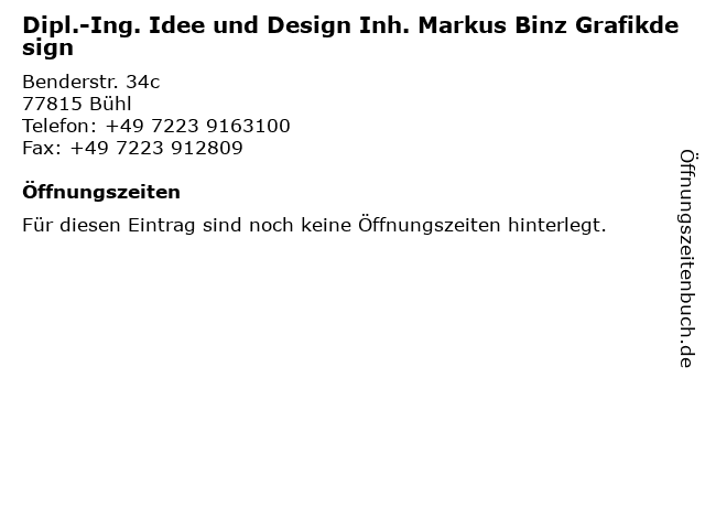 | Dipl.-Ing. Idee und Design Inh. Markus Binz Grafikdesign anrufen | |