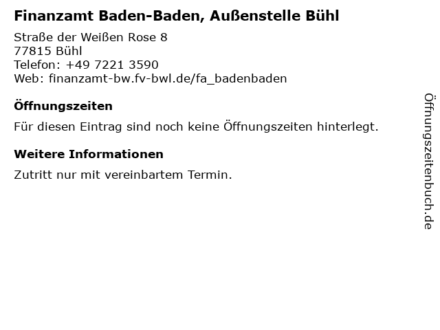 | Finanzamt Baden-Baden, Außenstelle Bühl anrufen | |