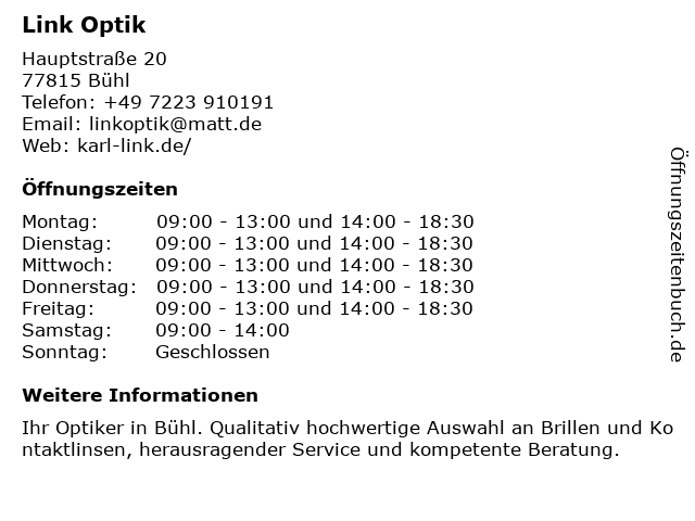 Öffnungszeiten Link Optik in Bühl anzeigen | |