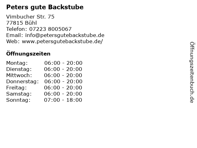 | Öffnungszeiten Peters gute Backstube in Bühl anzeigen | |