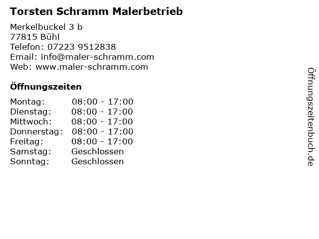 | Öffnungszeiten Torsten Schramm Malerbetrieb in Bühl anzeigen | |
