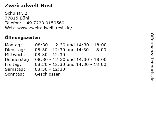 | Öffnungszeiten Zweiradwelt Rest in Bühl anzeigen | |