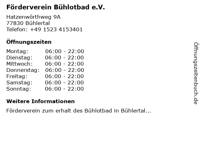 Branchen & Suchbegriffe zu Förderverein Bühlotbad e.V.:bühlotbad, e.v., förderverein |