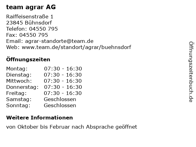 | Öffnungszeiten team agrar AG in Bühnsdorf anzeigen | |