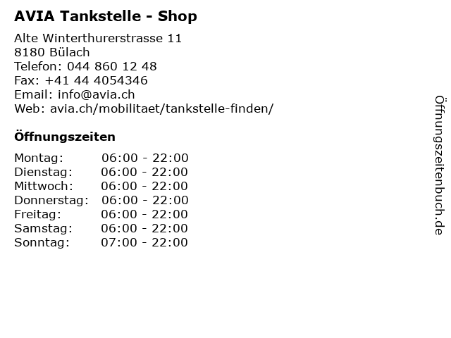 AVIA Tankstelle - Shop in Bülach: Telefonnummer, Öffnungszeiten und Adresse