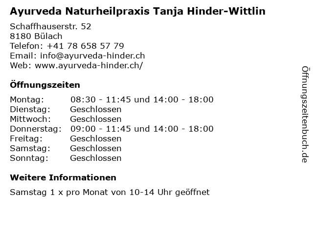 | Montag | 08:30-11:45 und 14:00-18:00 |