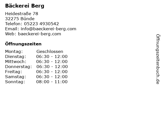 | Öffnungszeiten Bäckerei Berg in Bünde anzeigen | |