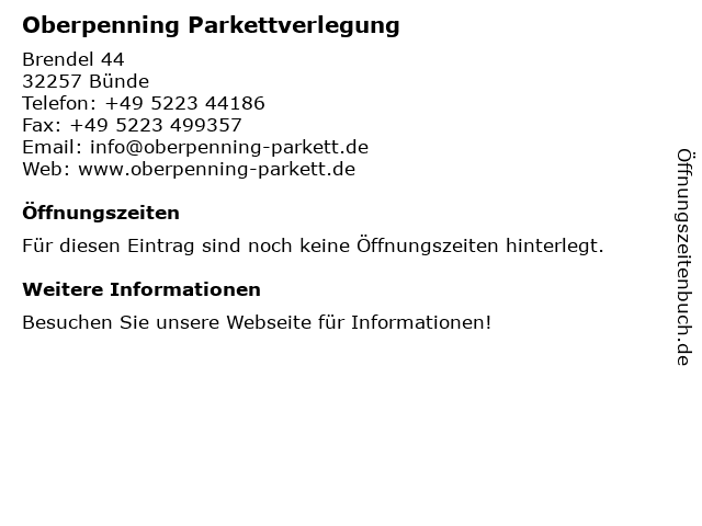 | Öffnungszeiten Oberpenning Parkettverlegung in Bünde anzeigen | |