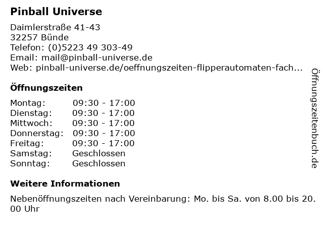 | Öffnungszeiten Pinball Universe in Bünde anzeigen | |