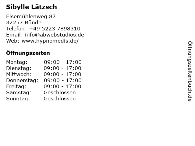 | Öffnungszeiten Sibylle Lätzsch in Bünde anzeigen | |