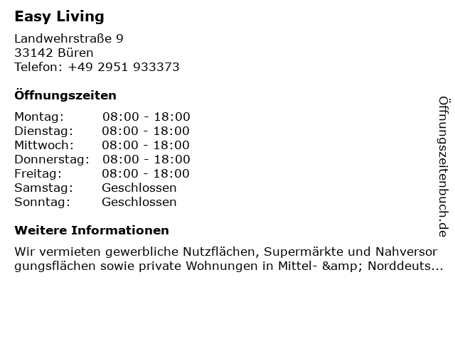 | Öffnungszeiten Easy Living in Büren anzeigen | |