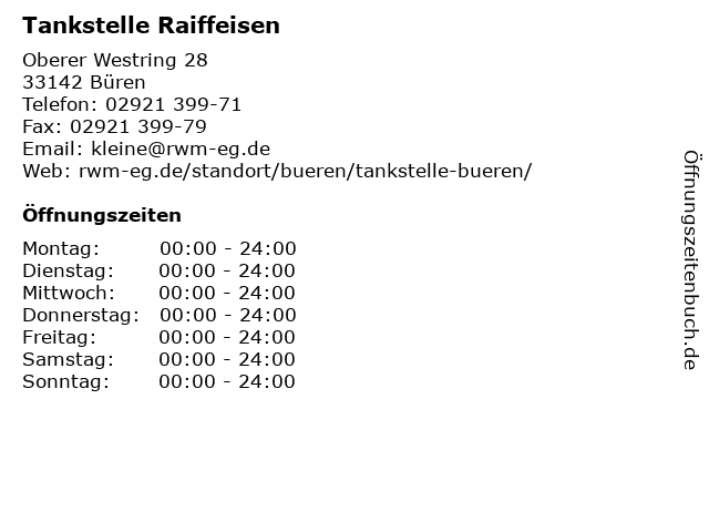 | Öffnungszeiten Tankstelle Raiffeisen in Büren anzeigen | |