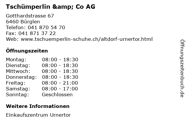 | Öffnungszeiten Tschümperlin & Co AG in Bürglen anzeigen | |