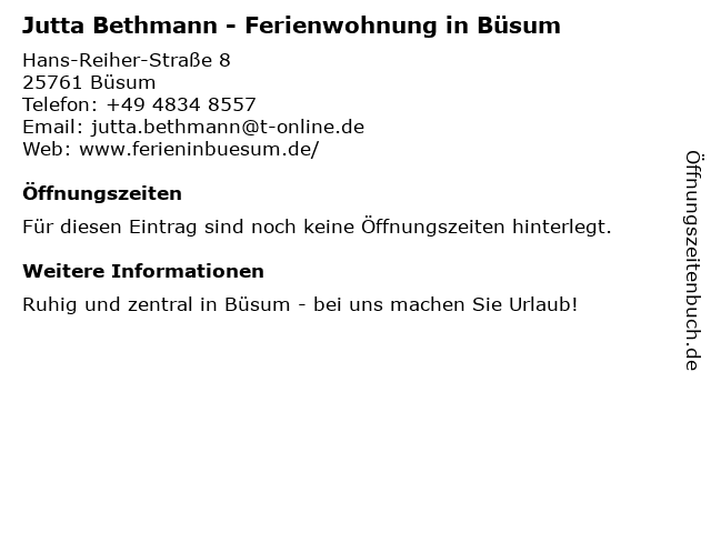 | Jutta Bethmann - Ferienwohnung in Büsum anrufen | |