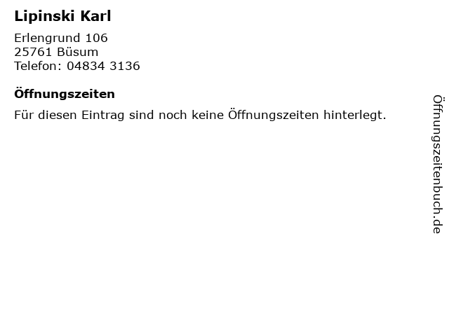 | Öffnungszeiten Lipinski Karl in Büsum anzeigen | |