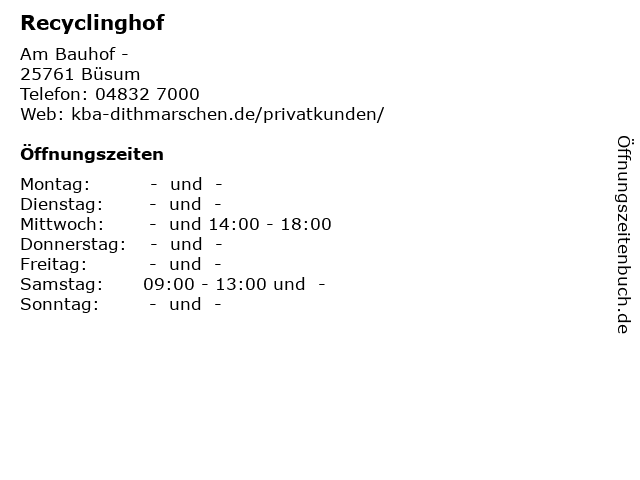 | Öffnungszeiten Recyclinghof in Büsum anzeigen | |