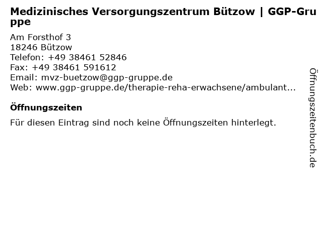 | Medizinisches Versorgungszentrum Bützow | GGP-Gruppe anrufen | |
