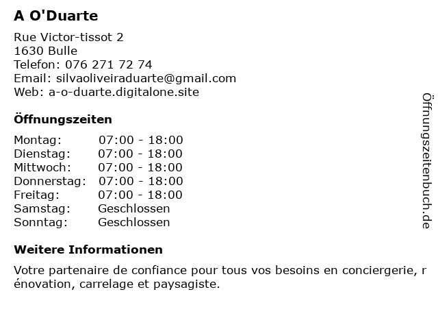 | Öffnungszeiten A O'Duarte in Bulle anzeigen | |