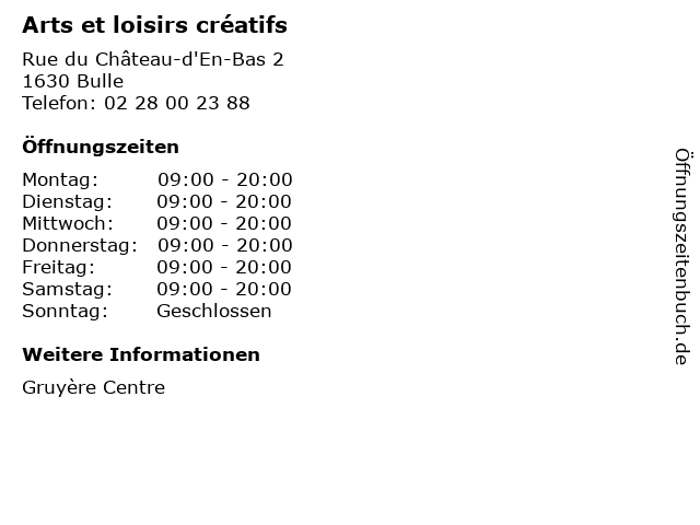 Öffnungszeiten Arts et loisirs créatifs in Bulle anzeigen | |