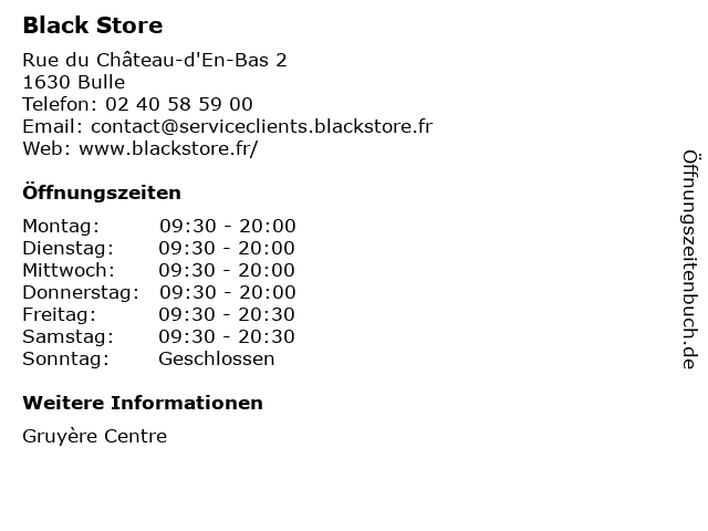 Öffnungszeiten Black Store in Bulle anzeigen | |