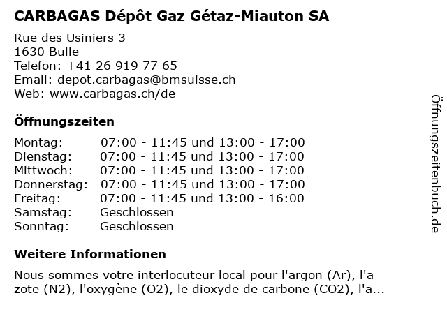 Branchen & Suchbegriffe zu CARBAGAS Dépôt Gaz Gétaz-Miauton SA:acetylen, argon, ballongas, carbagas, co2 gasflasche, druckminderer, dépôt, gasflasche, gaz, gétaz, helium, kohlendioxid, kohlensäure, miauton, minitop, propan, sa, sauerstoff, schutzgas, schweissgas, stickstoff, tauschflasche, technische gase, trockeneis, wasserstoff |