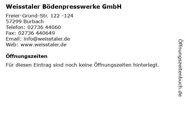 | Weisstaler Bödenpresswerke GmbH anrufen | |