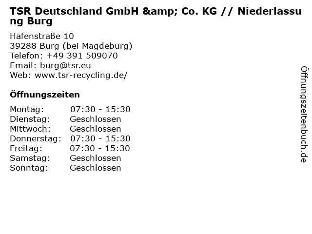 Branchen & Suchbegriffe zu TSR Deutschland GmbH & Co. KG // Niederlassung Burg://, burg, deutschland, niederlassung, tsr |
