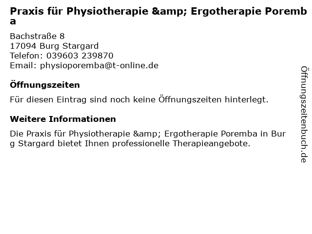 | Praxis für Physiotherapie & Ergotherapie Poremba anrufen | |