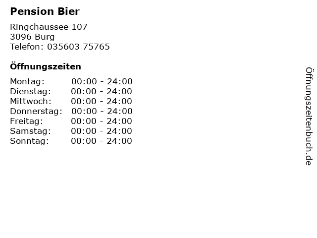| Öffnungszeiten Pension Bier in Burg anzeigen | |