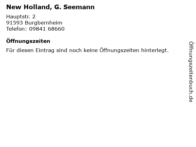 | Öffnungszeiten New Holland, G. Seemann in Burgbernheim anzeigen | |