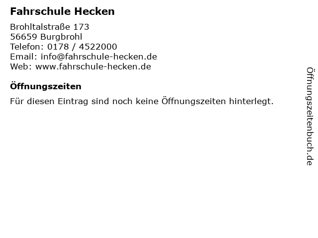 | Öffnungszeiten Fahrschule Hecken in Burgbrohl anzeigen | |