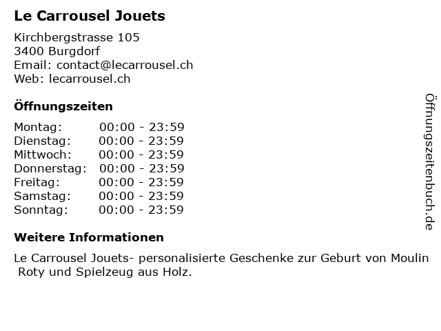 | Öffnungszeiten Le Carrousel Jouets in Burgdorf anzeigen | |