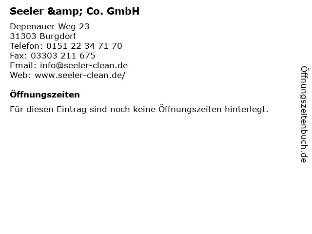 | Öffnungszeiten Seeler & Co. GmbH in Burgdorf anzeigen | |