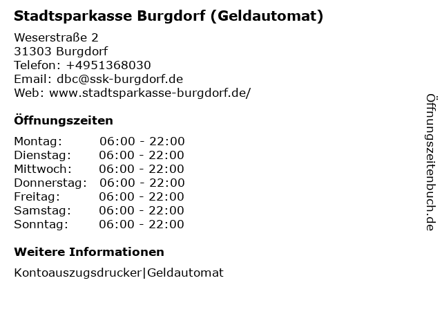 Branchen & Suchbegriffe zu Sparkasse Hannover (ehem. SSK Burgdorf) (Geldautomat mit Einzahlfunktion):burgdorf, ehem., einzahlfunktion, geldautomat, mit, sparkasse, ssk |