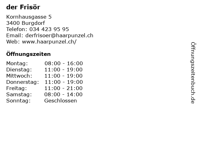 | Öffnungszeiten der Frisör in Burgdorf anzeigen | |
