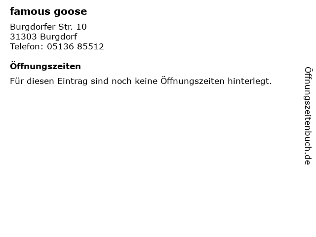 | Öffnungszeiten famous goose in Burgdorf anzeigen | |