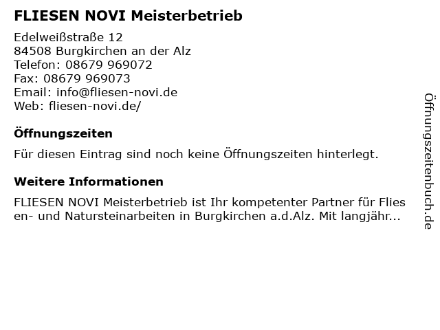 Öffnungszeiten FLIESEN NOVI Meisterbetrieb