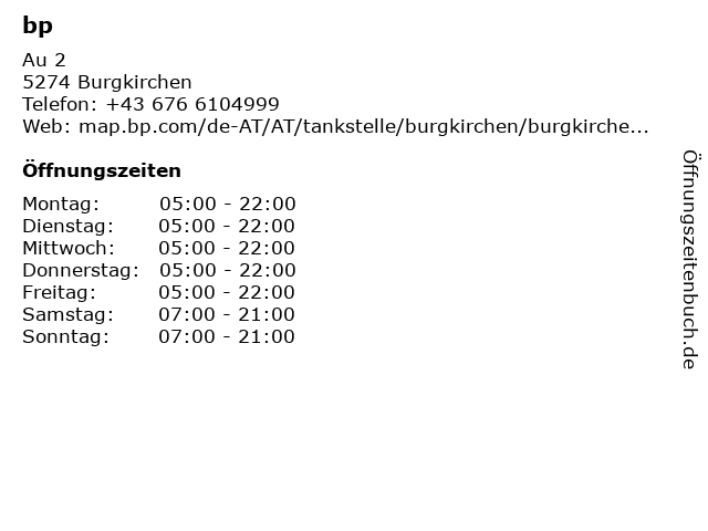 | Öffnungszeiten bp in Burgkirchen anzeigen | |