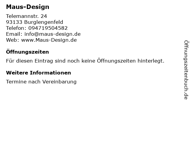 | Öffnungszeiten Maus-Design in Burglengenfeld anzeigen | |