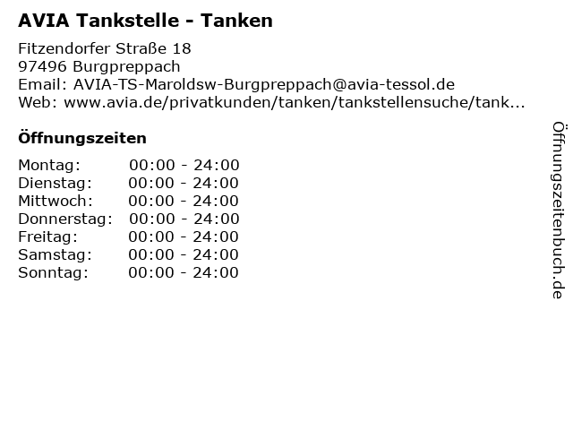 | Öffnungszeiten AVIA Tankstelle - Tanken in Burgpreppach anzeigen | |