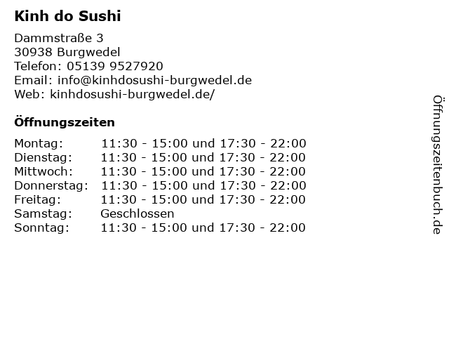 | Öffnungszeiten Kinh do Sushi in Burgwedel anzeigen | |