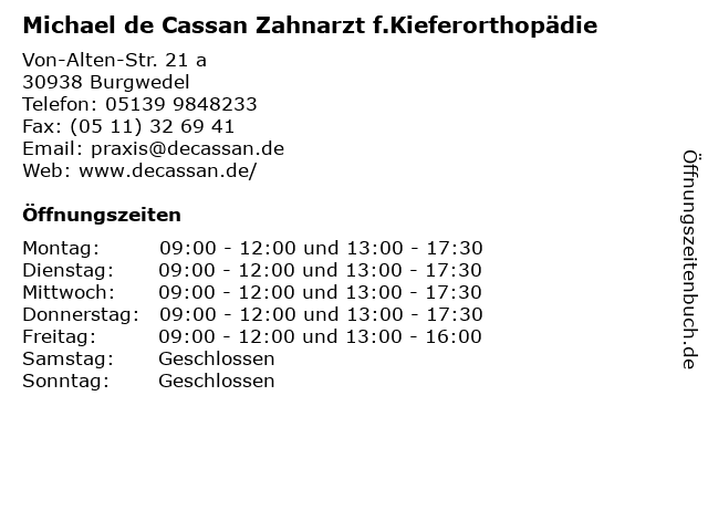 | Montag | 09:00-12:00 und 13:00-17:30 |