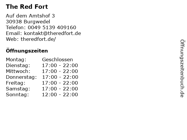 | Öffnungszeiten The Red Fort in Burgwedel anzeigen | |