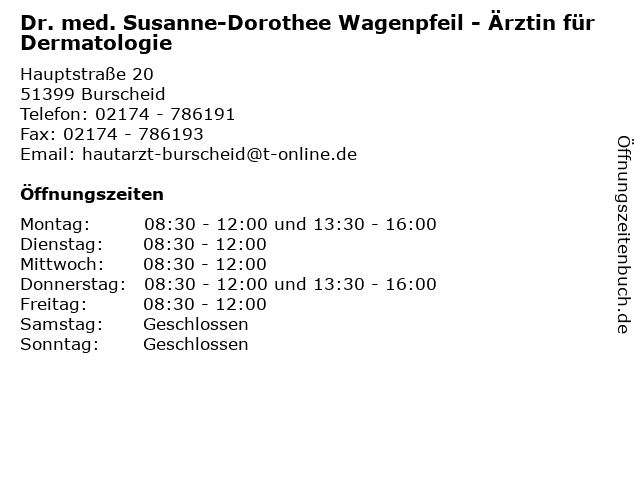 Branchen & Suchbegriffe zu Dr. med. Susanne-Dorothee Wagenpfeil - Ärztin für Dermatologie:dermatologe, dermatologie, dorothee, dr., hautarzt, med., sprechzeiten, susanne, wagenpfeil, ärztin |