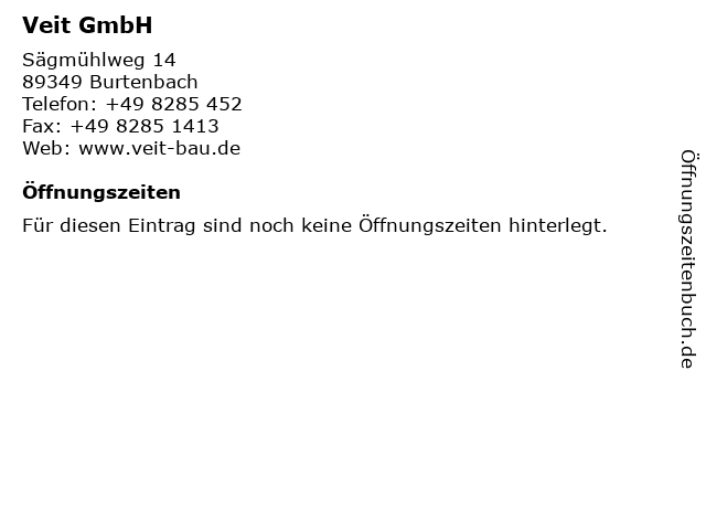 | Öffnungszeiten Veit GmbH in Burtenbach anzeigen | |